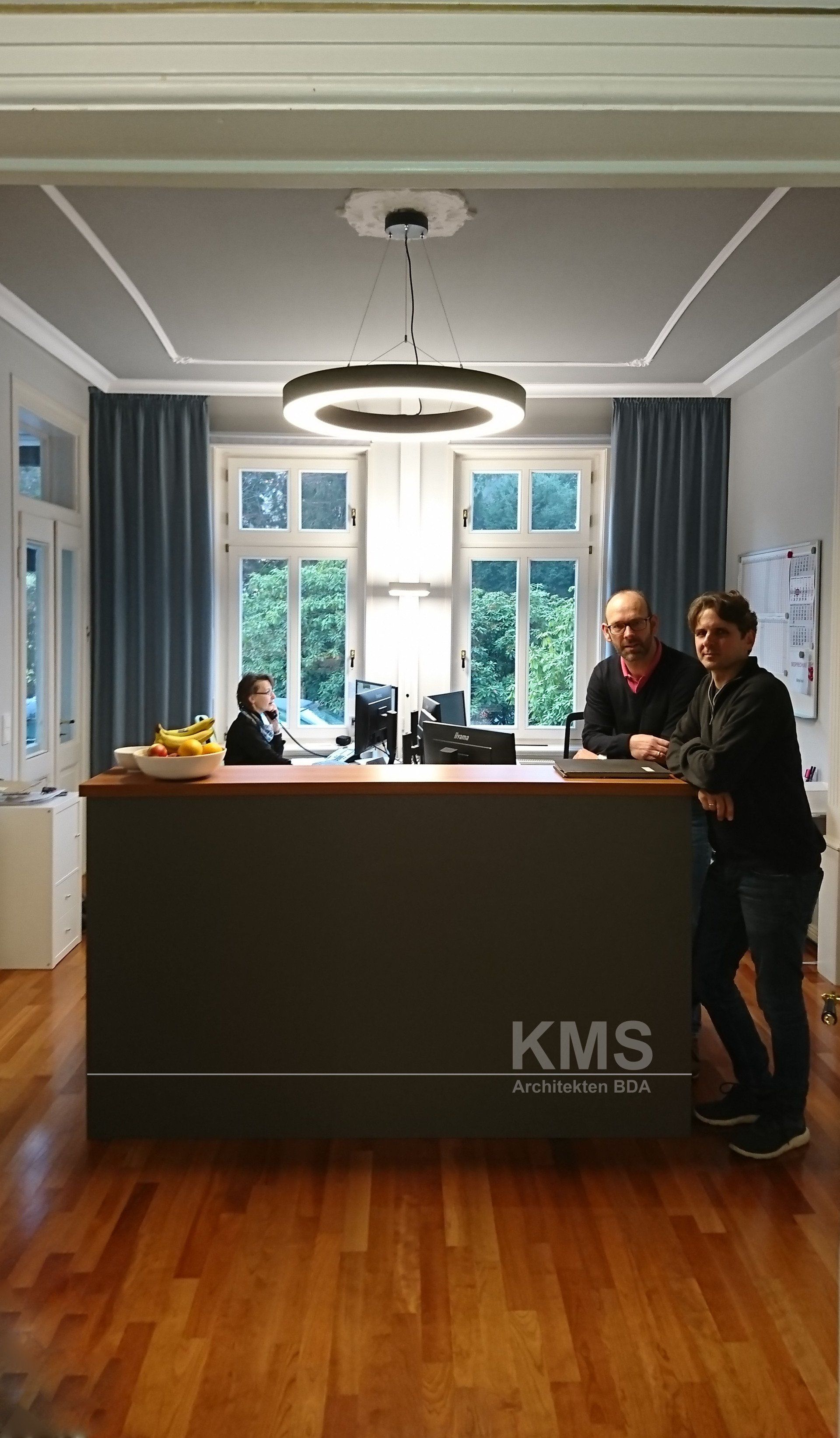 Mit der Umnutzung zum Bürogebäude werden sämtliche Räumlichkeiten durch das Architekturbüro belegt. Daher wird die Büroeinheit durch einen untergeordneten, kleinen Verbindungsbau an die Villa angeschlossen.