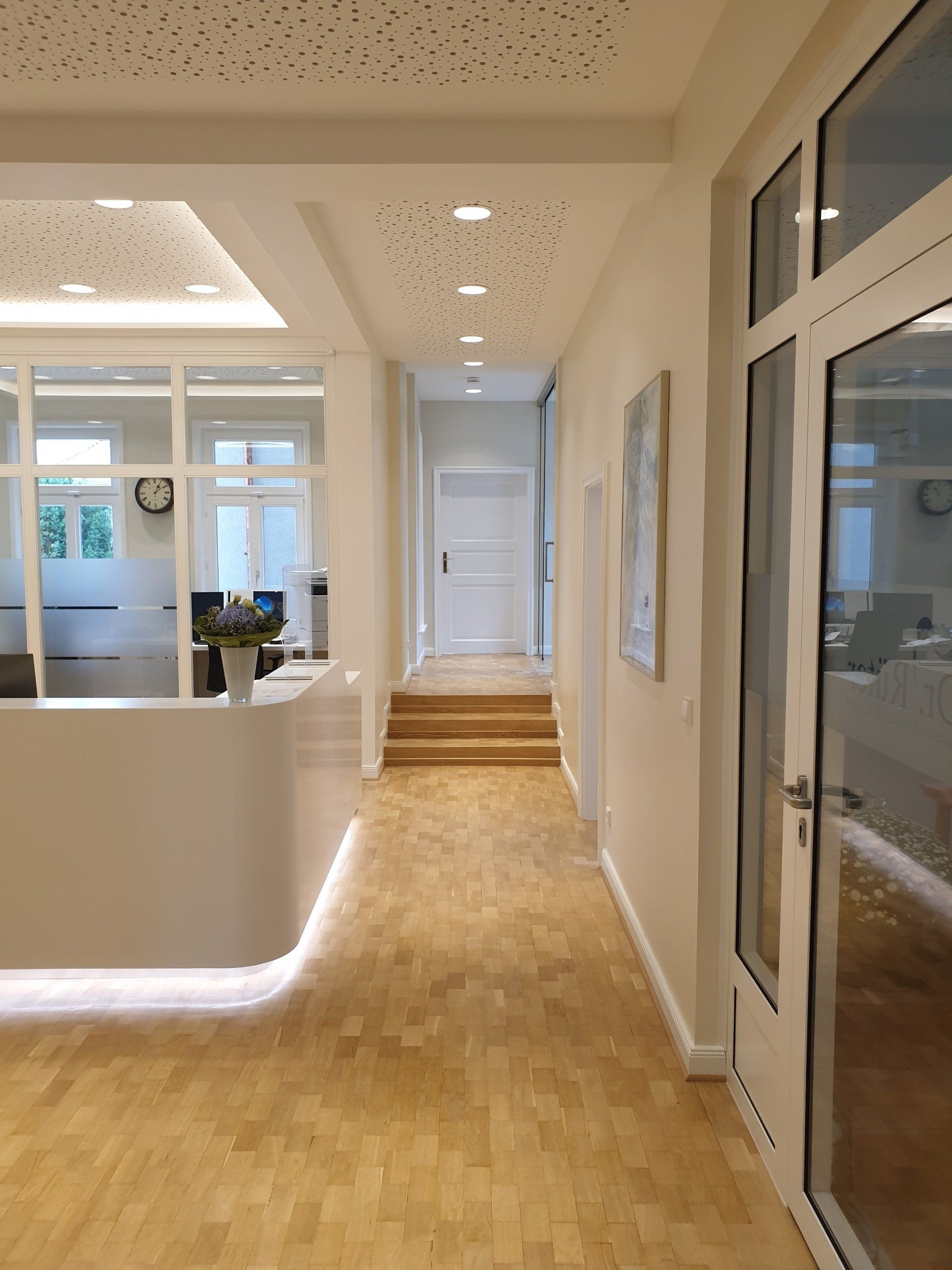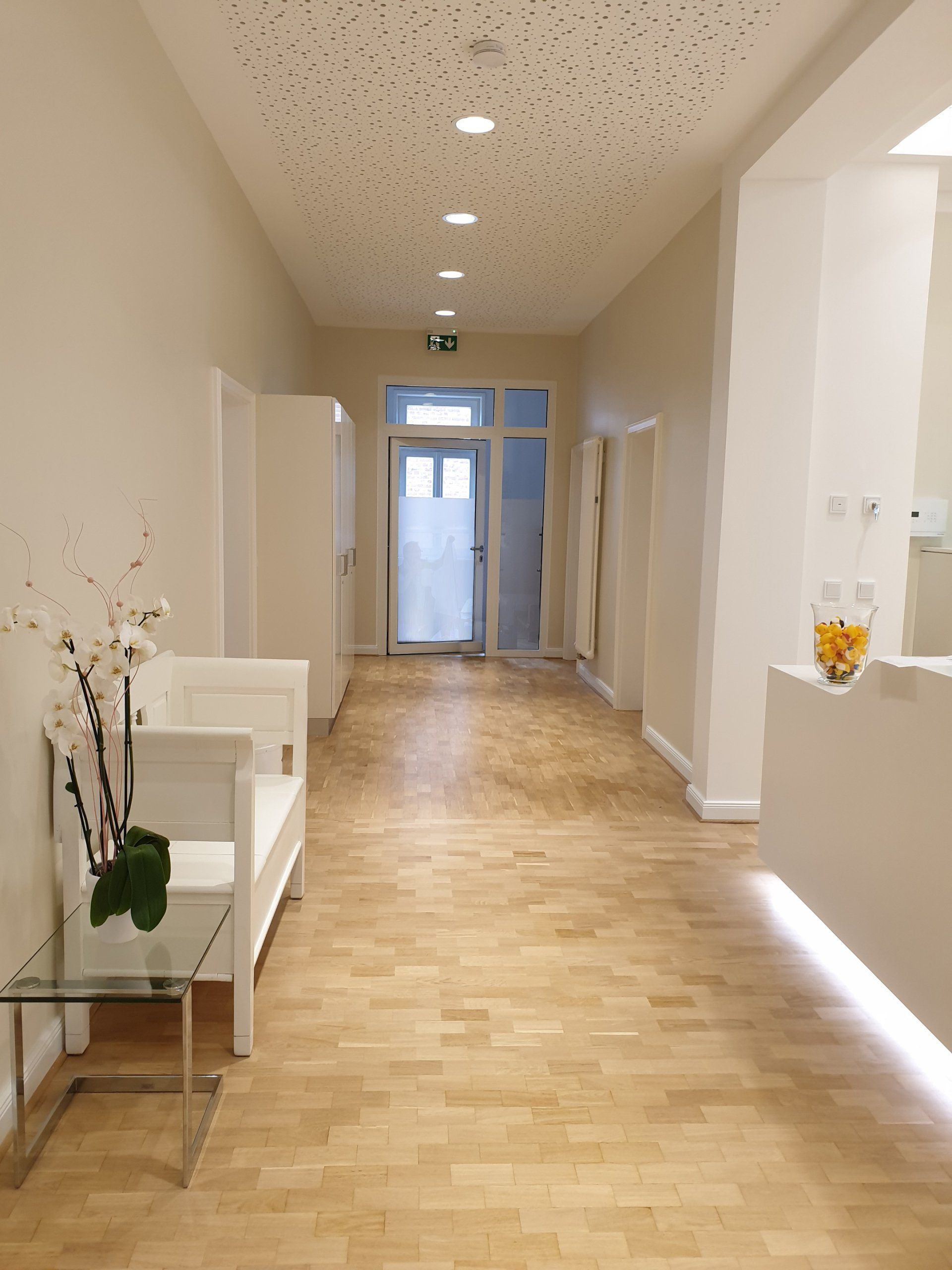 In der in einem denkmalgeschützten Gebäude befindlichen, familiengeführten Gemeinschaftspraxis für Zahnmedizin und Kieferorthopädie reichte aufgrund der Patientenentwicklung das Platzangebot nicht mehr aus. Die kieferorthopädische Praxis wurde daher ausgelagert und befindet sich nun in dem unter Denkmalschutz stehenden, aus dem 19. Jahrhundert stammenden Nachbargebäude, in dessen Erdgeschoss sich vorher 2 Wohnungen befanden.