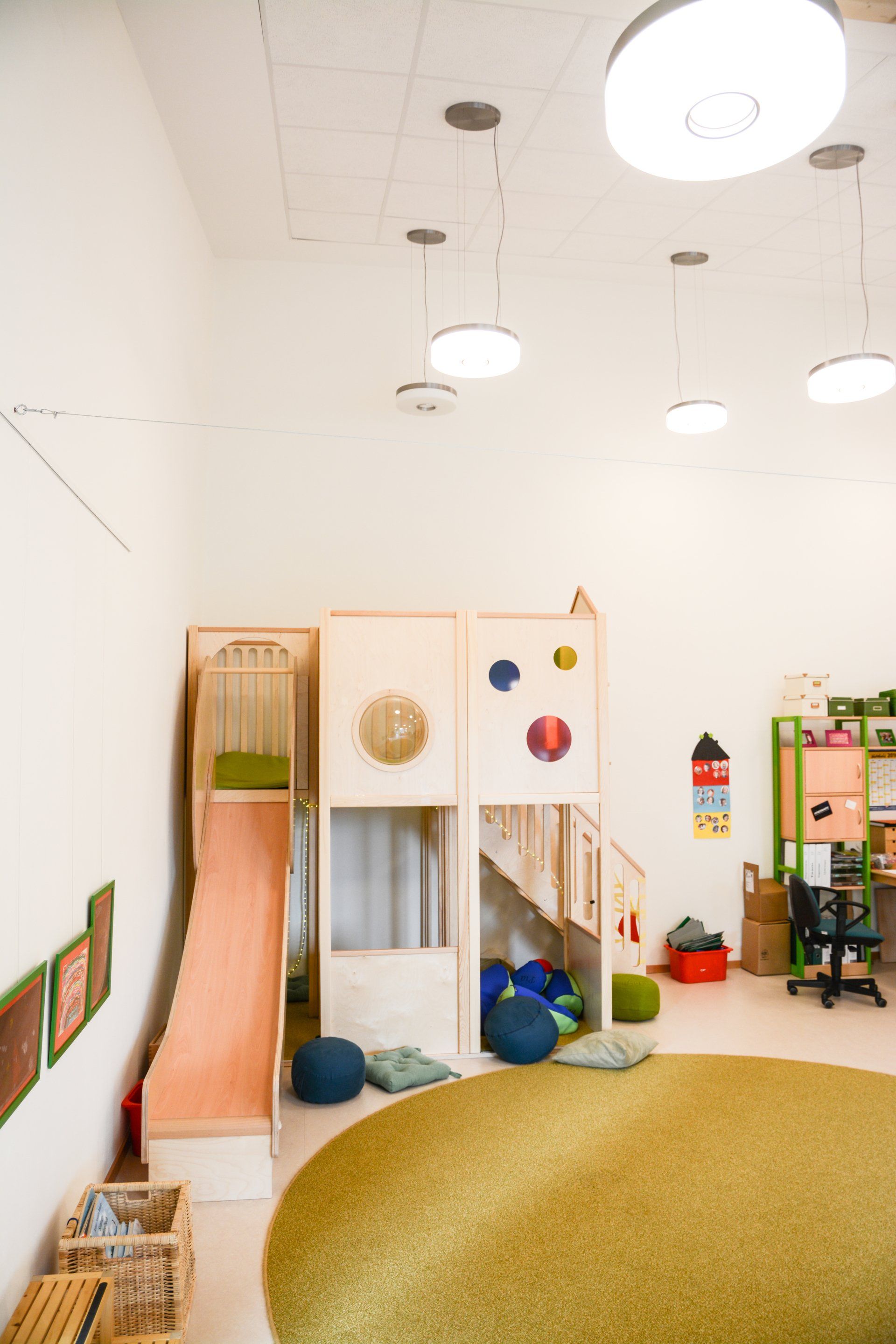 Die Einzelhäuser kennzeichen zusammen mit Sonderbaukörpern des Kinderbereiches die Nutzung als Kindertagestätte.