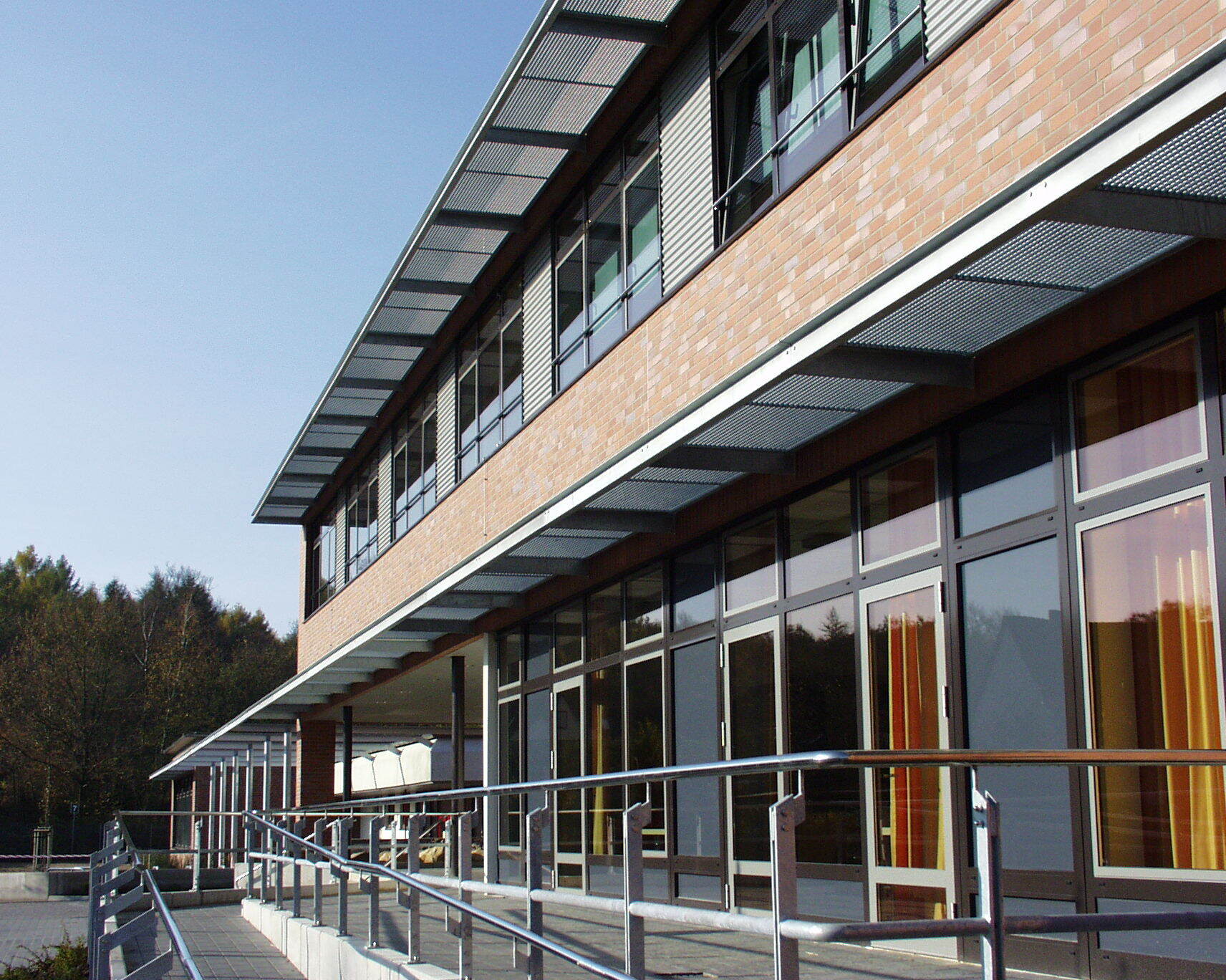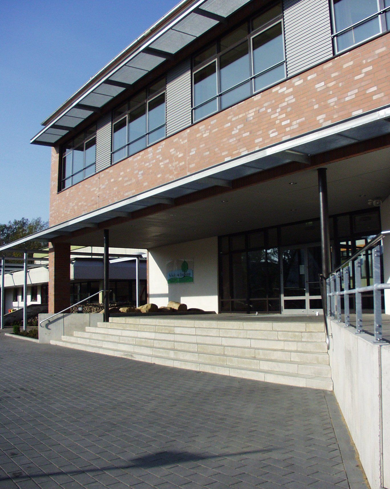 Neubau und Vorplatz ergeben ein prägnantes neues Erscheinungsbild des Schulzentrums und bieten einen hohen Identifikationswert und verdeutlichen den neuen