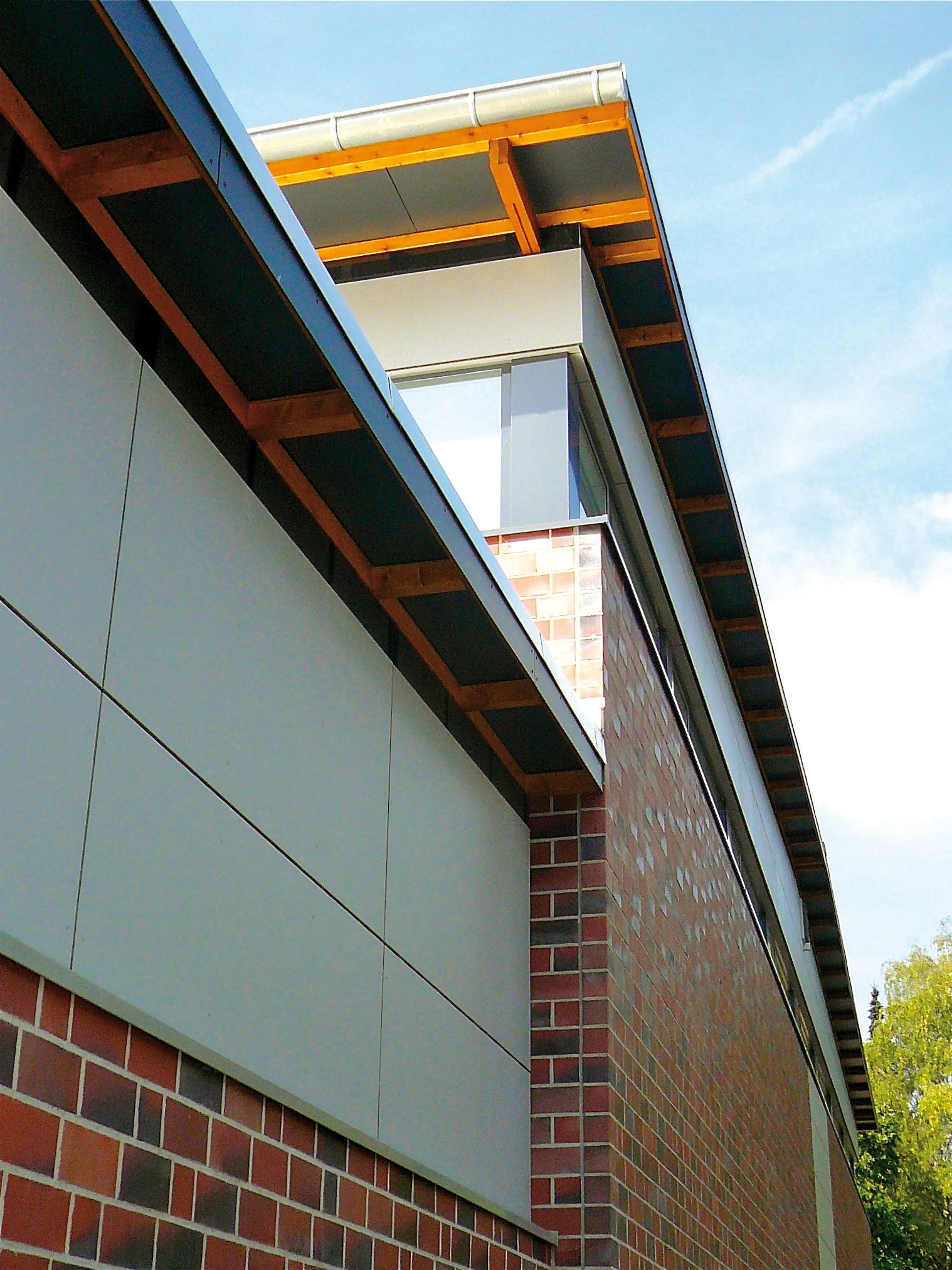 Der Neubau nimmt gestalterisch durch Materialität und Baukörperausbil-
